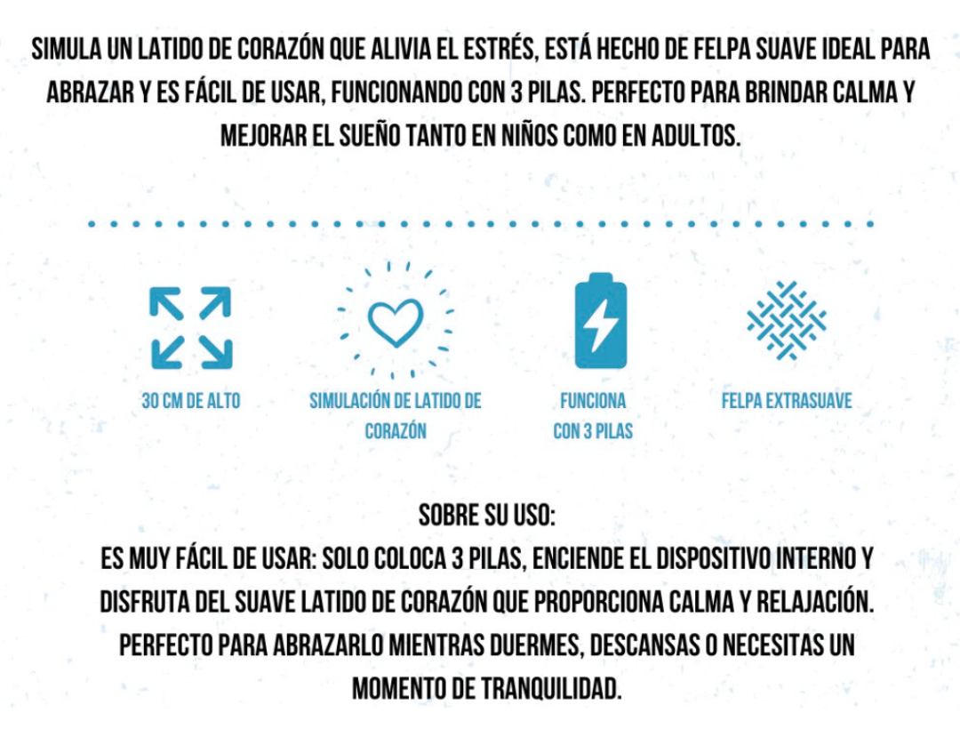 Su vientre suave se mueve hacia arriba y hacia abajo en ritmos similares a la respiración, ayudando a relajarse naturalmente durante hasta 30 minutos, acompañado de música calmante, efectos de sonido e iluminación tenue.